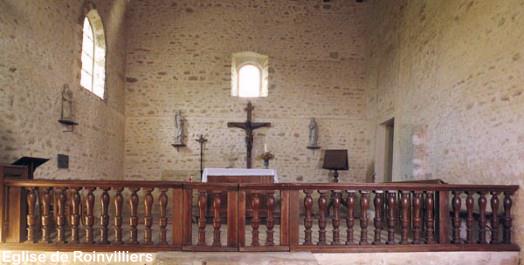Le choeur est toujours en possession de sa table de communion, et celle-ci est particulièrement remarquable.(colonnes en bois). Côté architecture, il possède un reste de colonne qui laisserait supposer qu'il a été voûté. Le plafond est de bois, plat, soutenu par des poutres.