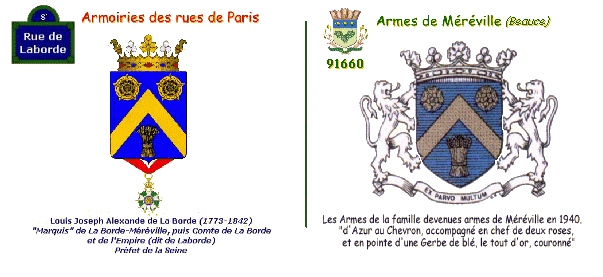 | En 1940, la famille de Laborde, a offert à la ville de Méréville, le droit d'associer son blason au nom de la localité pour laquelle elle a tant donné. Une rue de Méréville porte ce nom, ainsi qu'une rue du 8e arrondissement de Paris car Louis fut préfet de la Seine (Tiers-Etats). Sa devise était "Faire beaucoup avec peu" |