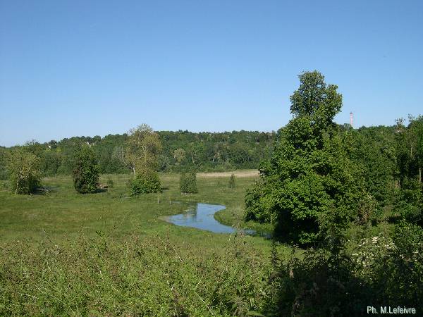 Les boucles de la Juine reprennent peu à peu une allure "noble", les dégâts des tempêtes ajoutés à ceux des ans ont été effacés autant que possible. Quelle belle vue malgré les gouttes de pluie (à gauche) ... une pluie qui donna six mois après un aspect plus que sympathique ! (à droite)